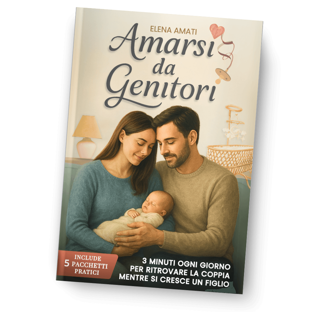 Ritrovate la connessione di coppia mentre crescete i vostri figli, con un metodo pratico che richiede solo 3 minuti al giorno. Niente più sensi di colpa, niente strategie complicate: solo piccoli gesti quotidiani che trasformano la relazione.